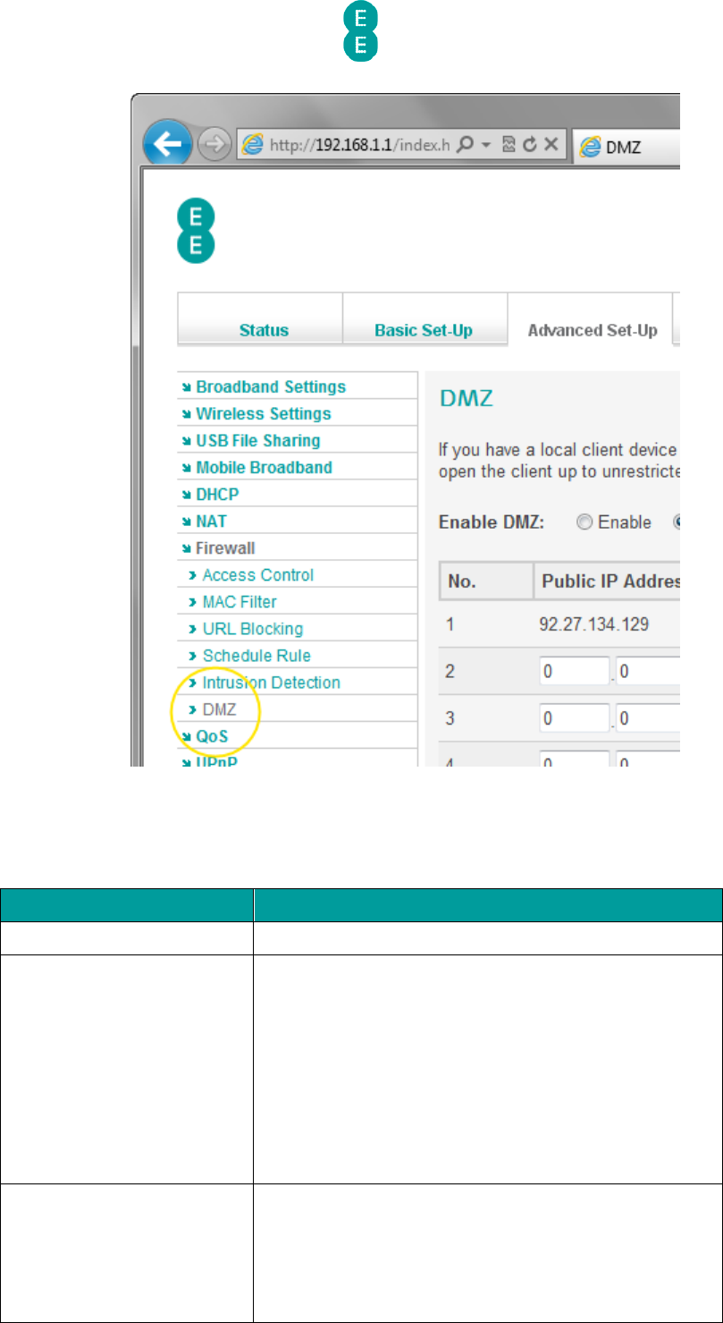 The table below contains a description of the settings on the DMZ page: