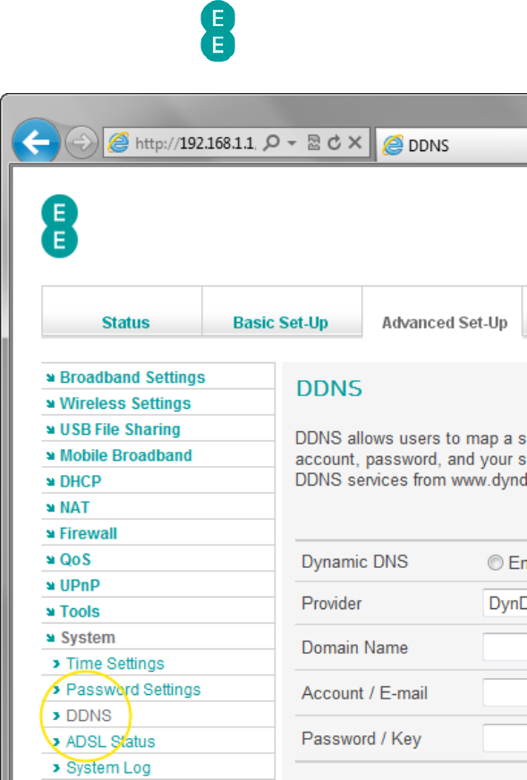 5. Click on DDNS on the left hand menu.