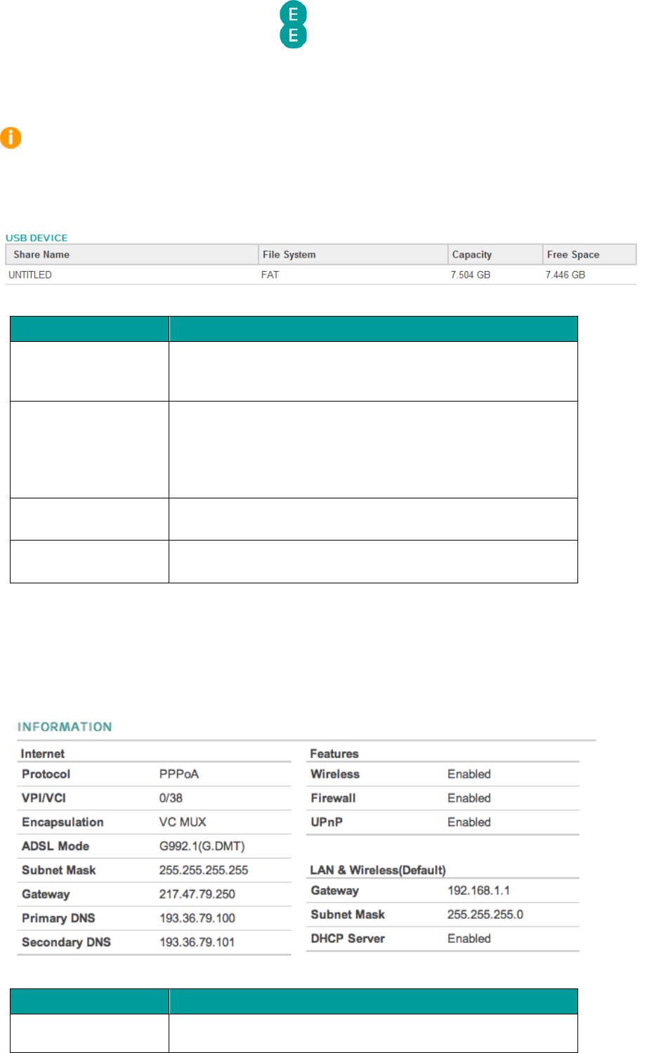 In this section you can see details of a storage device (such as a USB hard drive) connected